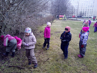 Siis läksid lapsed õue putukaid otsima, küll maasikapeenrast, põõsa alt, puutüvelt.